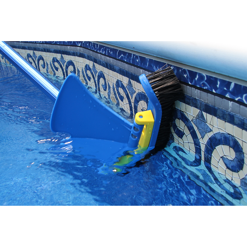 - Easily attaches to telescopic pole to brush pool surface