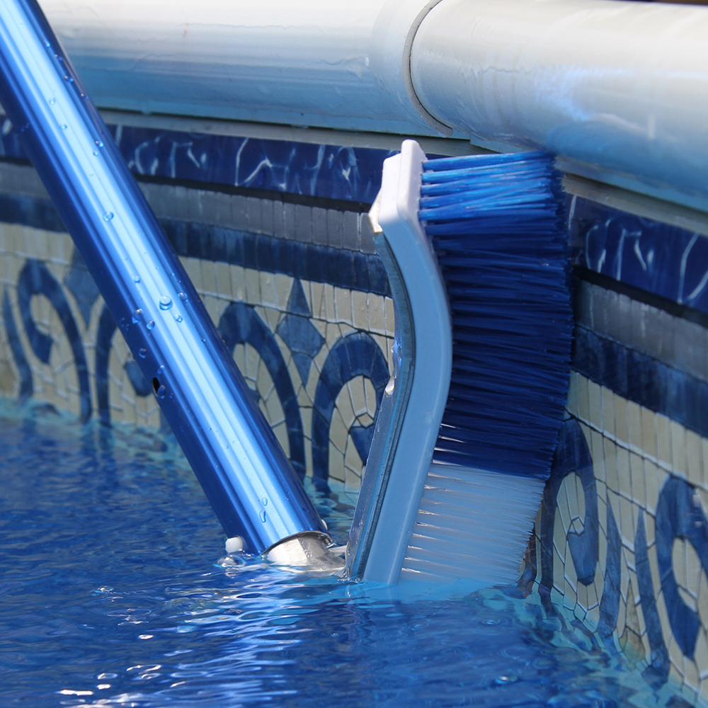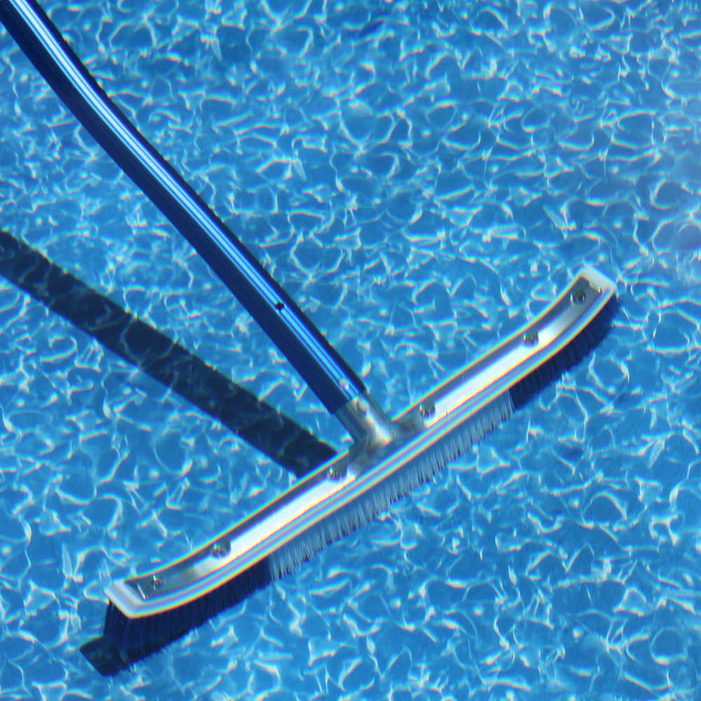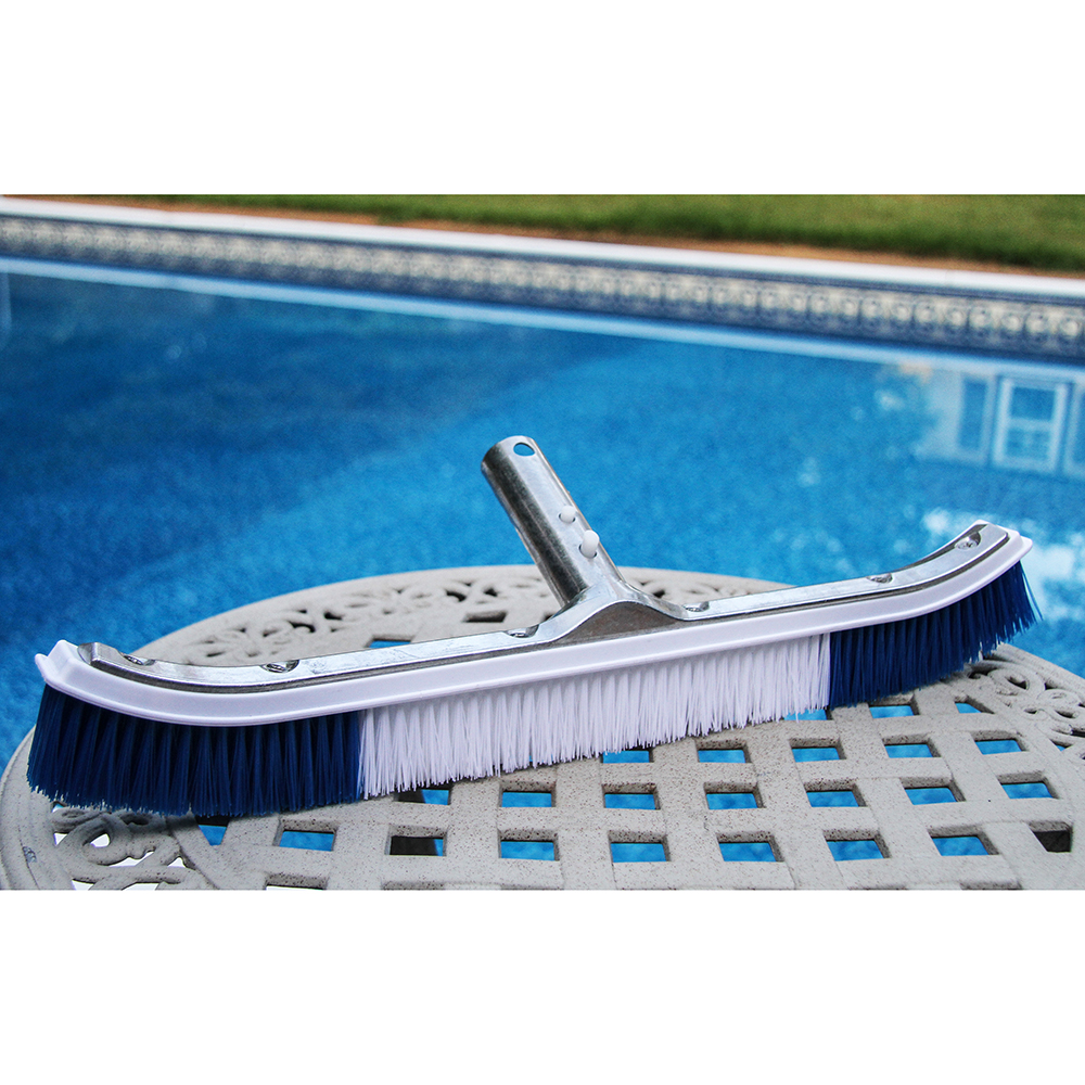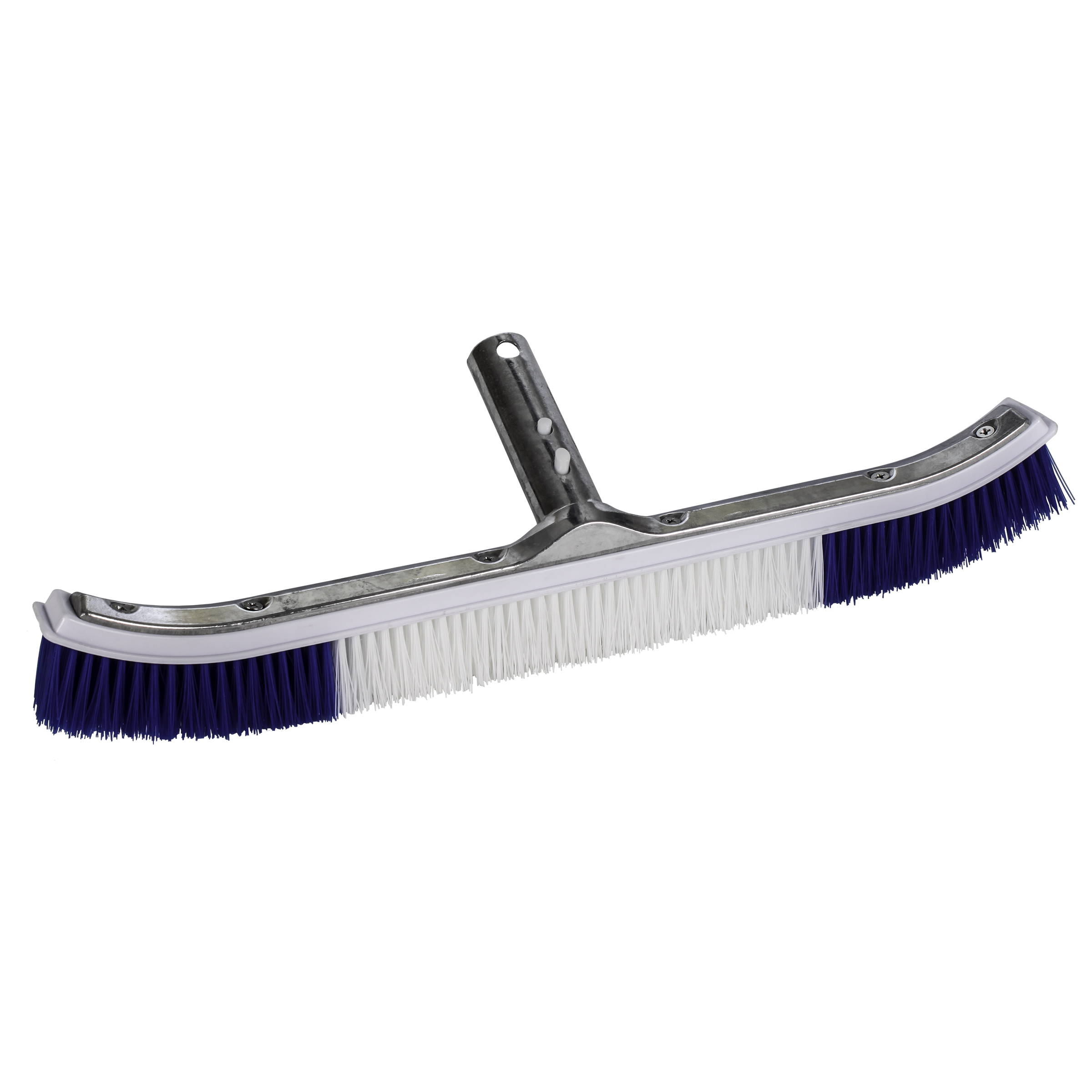 18 In. aluminum handle wall brush. This brush can be used on all types of pools and spas. It connects securely to any Aqua EZ pool pole. Use this brush on pool walls and floors for removal of dirt and algae deposits.