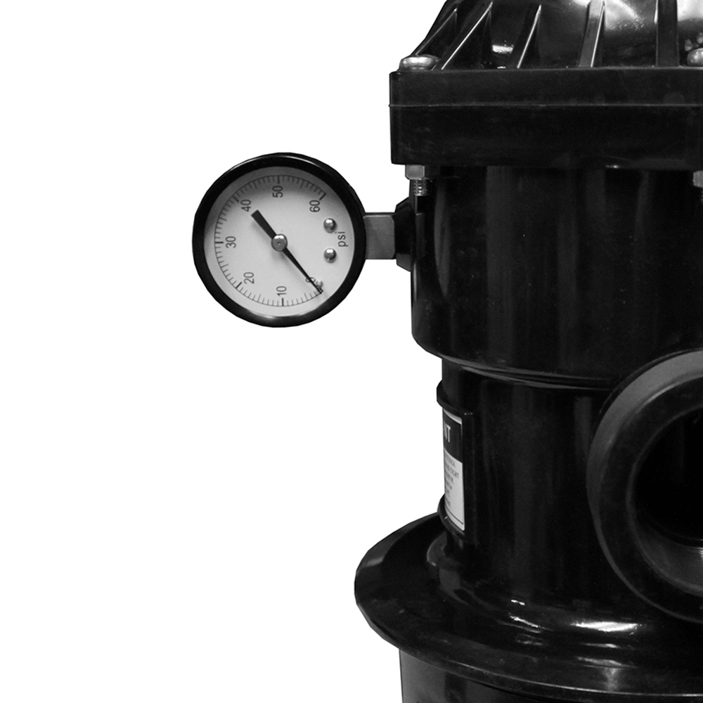 Side mount pressure gauge with metal case and easy to read display. Connects to your filtration system for easy monitoring. Metal case adds durability to the longevity of the pressure gauge.